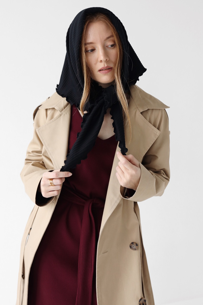 Chusta z bawełnianej dzianiny prążkowanej wykończona mereżką. Bawełniana chusta świetnie sprawdzi się w chłodniejsze, jesienno-zimowe dni. Miękka dzianina przyjemnie otuli szyję lub głowę – w zależności jak zechcesz ją nosić. Chusta ma jeden uniwersalny rozmiar ONE SIZE.