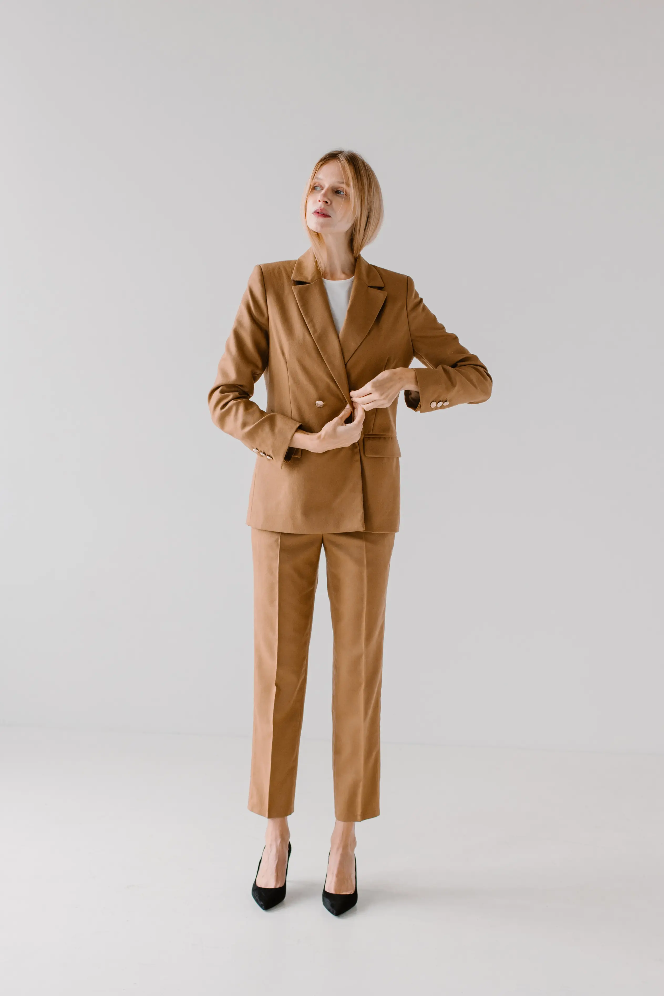 Warto też myśleć przyszłościowo. Garnitur damski powinien pasować do reszty Twojej garderoby i umożliwiać tworzenie wielu zestawów – zarówno formalnych, jak i casualowych.