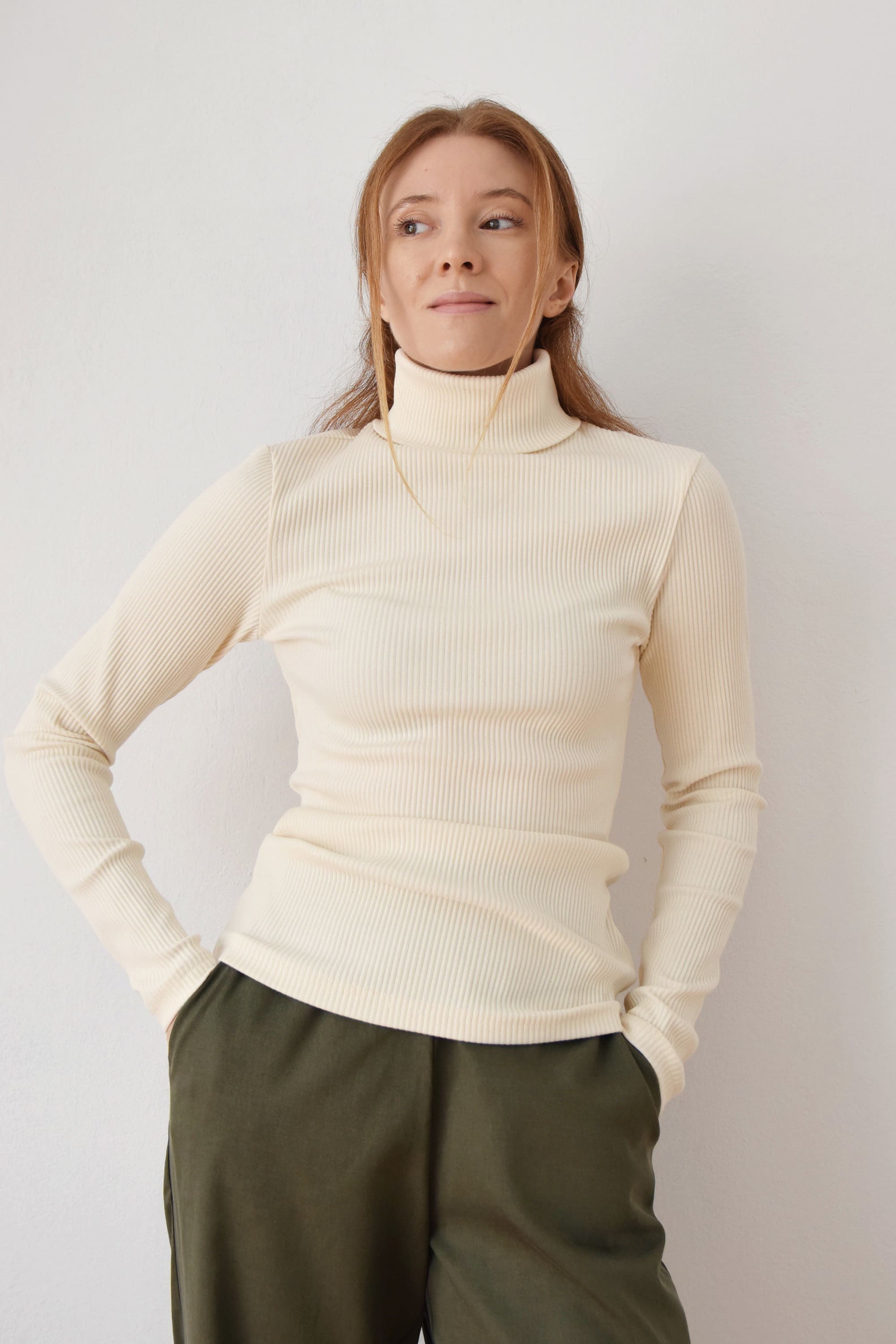 Golf damski z bawełnianej dzianiny prążkowanej o szerszym splocie – FELICIA. To “must have” w szafie wszystkich Kobiet, które uwielbiają otulające ubrania. Golf prezentuje się bardzo elegancko i kobieco. Stworzy piękny klasyczny look i zapewni cały ogrom komfortu w jesienno-zimowe dni. Mięsista a zaraz miękka dzianina świetnie sprawdzi się w jesienno-zimowych stylizacjach.