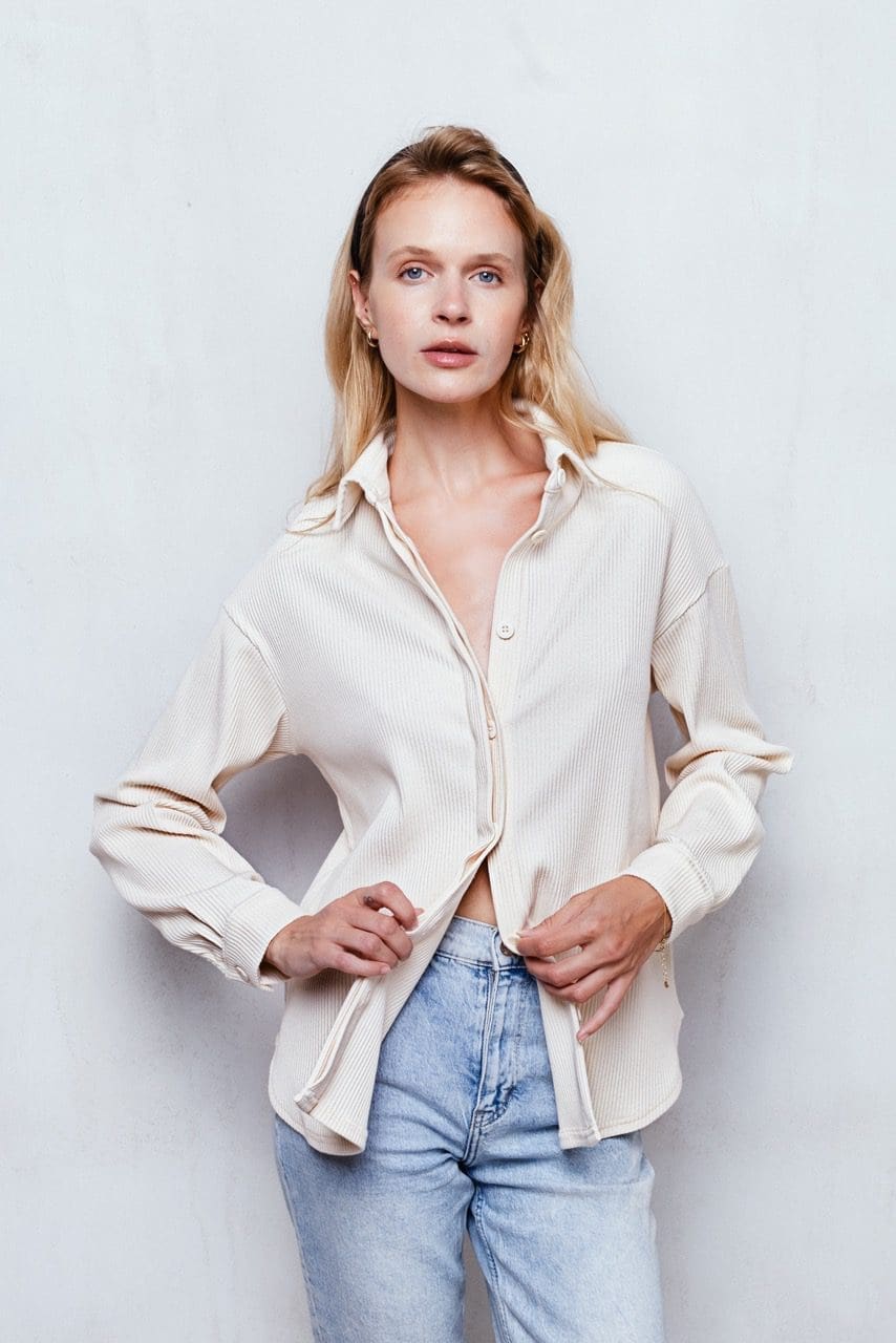 Koszula TUULA z dzianiny prążkowanej o szerszym splocie. To wyjątkowy produkt o niezwykłym charakterze. Nada Twoim stylizacjom niepowtarzalnego stylu. Koszula jest zapinana na guziki. Pokochasz jej komfort. Sprawdzi się świetnie jako narzutka. Możesz stylizować ją na wiele sposobów.