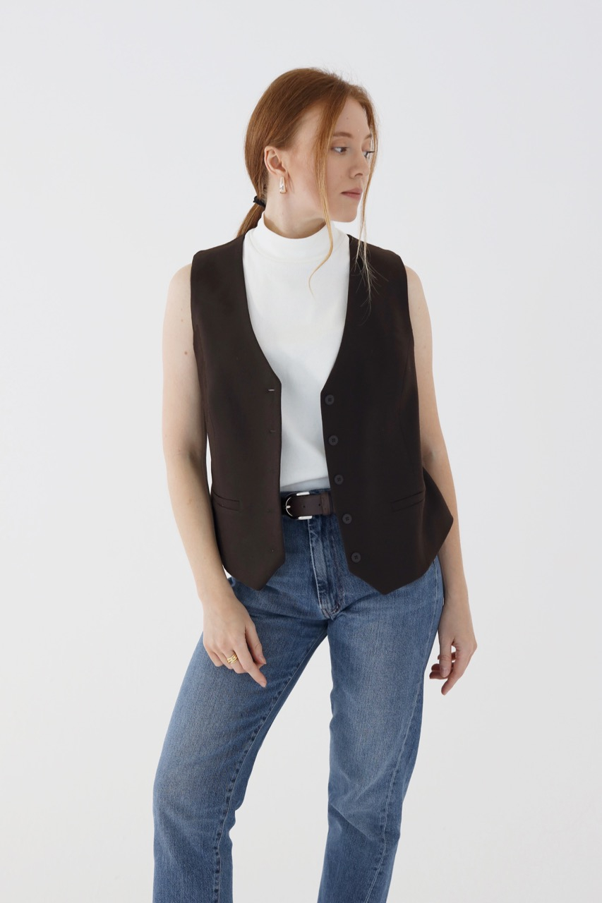 Krótka kamizelka z wełny w kolorze pięknej czekolady- VIRGINIA. Kamizelka stanowi niezwykle stylowy dodatek do jesienno-zimowej garderoby, a dodatkowo świetnie dociepla. Stwórz ciekawy zestaw Kamizelki VIRGINIA ze Spódnicą mini GABRIELLE lub Spodniami GRACE w tym samym odcieniu czekolady. Kamizelka od wewnętrznej strony ma wiskozową podszewkę. Kamizelka jest bardzo starannie wykończona, co dodatkowo nadaje jej szyku i sprawia, że to kolejny wyjątkowy produkt w naszej kolekcji.