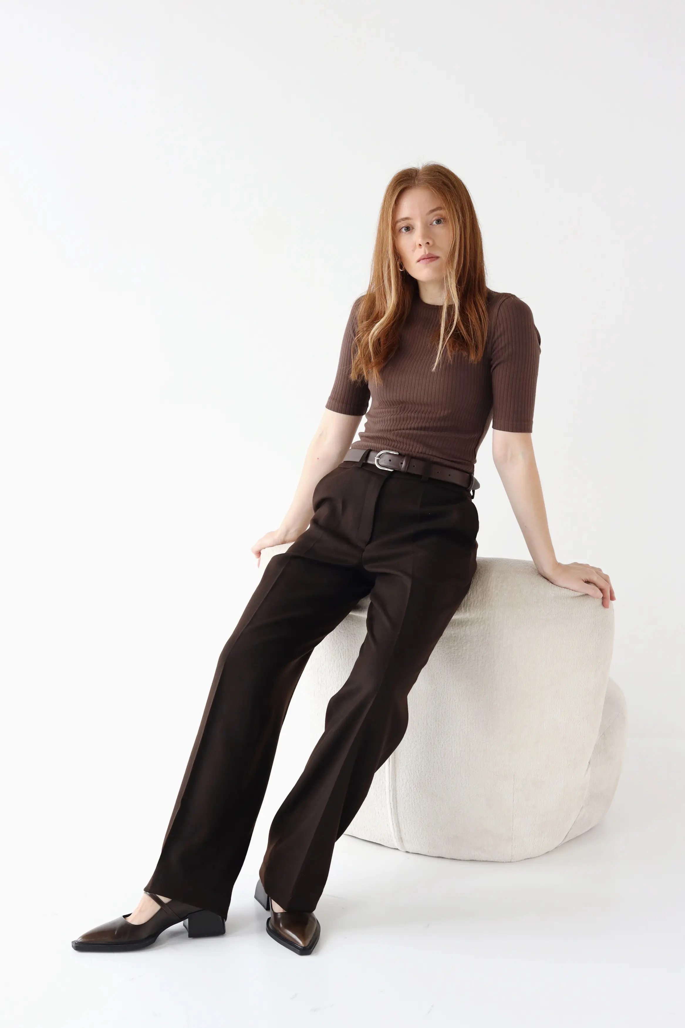 Spodnie damskie z wełny z prostymi nogawkami – GRACE. Przepiękna czekoladowa tkanina nadaje spodniom niezwykle eleganckiego, jak i modowego charakteru. Będą świetnym uzupełnieniem jesienno-zimowej szafy. Stworzą spójny look z Kamizelkami WILLOW oraz MARGARET. Wysoka gramatura tkaniny z wysoką zawartością wełny (80%) sprawia, że spodnie są bardzo ciepłe, miękkie i oddychające.
