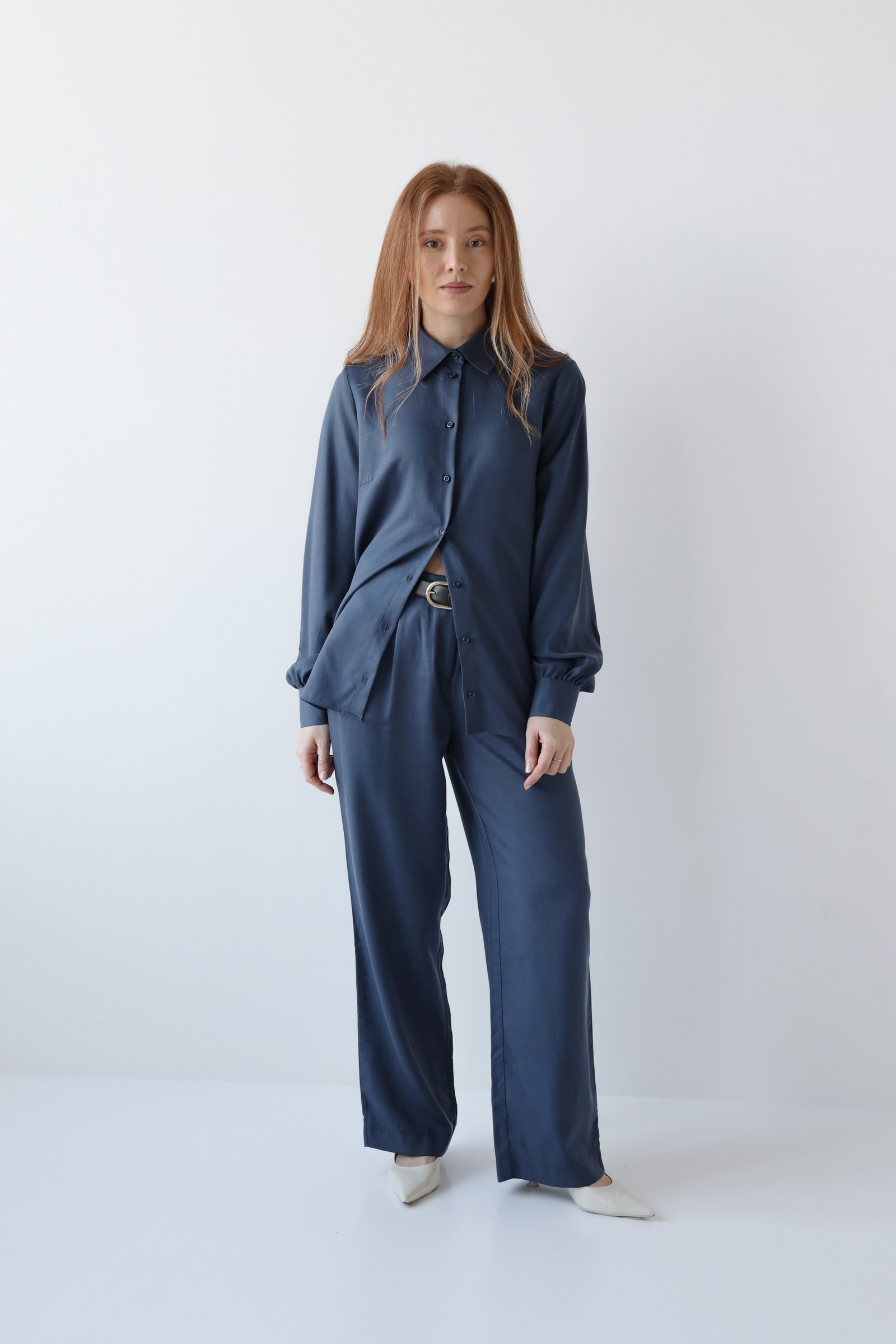 Spodnie z tencelu MORA o luźnym kroju z prostymi, szerokimi nogawkami. Spodnie w części tylnego pasa mają wszytą gumę, która pomoże im dopasować się do Twojego ciała i zapewni Ci maksimum komfortu. Spodnie MORA mają dwie subtelne zakładki, można je zaprasować na kant, co doda im elegancji. To must have w kobiecej szafie wiosną i latem! Tencel jest niezwykle przyjemny dla ciała. Spodnie są zwiewne i pięknie współgrają z ciałem.