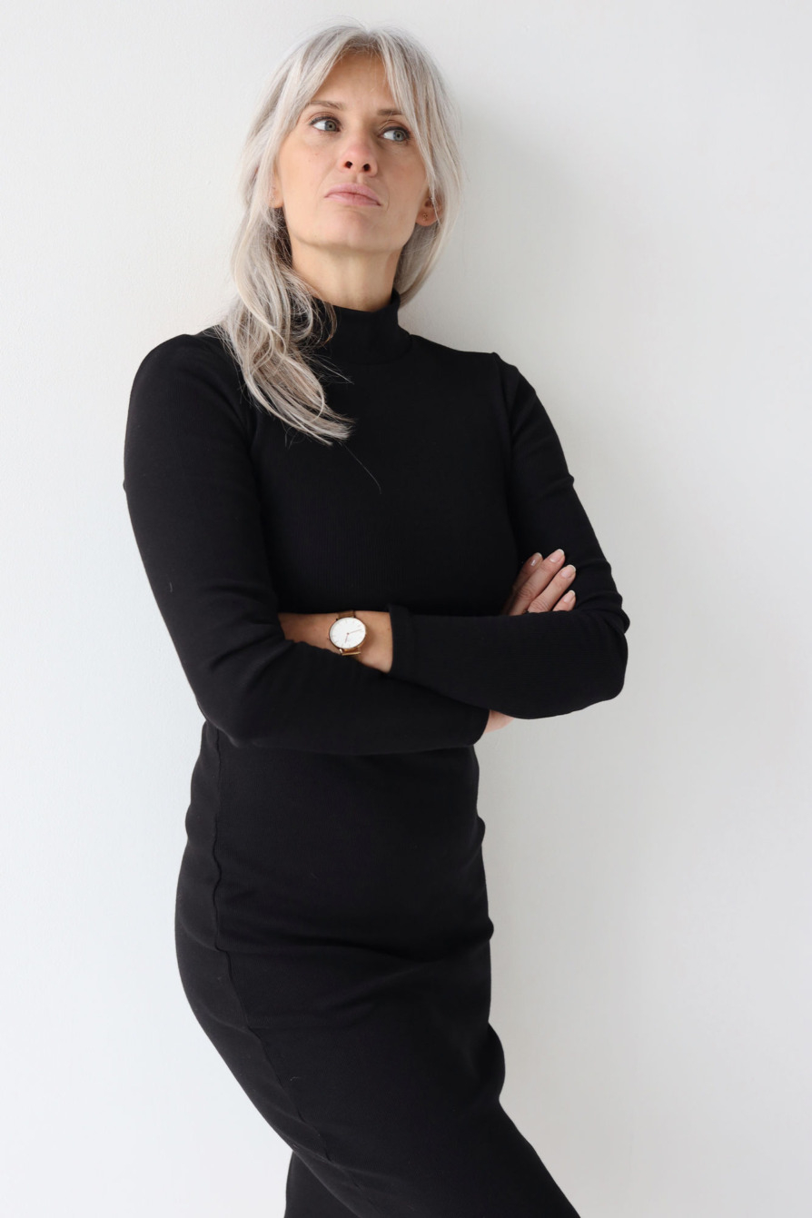Sukienka SYNNE z półgolfem i dekoltem V jest wyjątkowa dzięki swojej idealnie dopracowanej formie. Prosty krój podkreśla jej klasę oraz szyk. Półgolf przechodzący w głęboki dekolt V na plecach tworzy bardzo ciekawy efekt i jest niezwykle kobiecy.