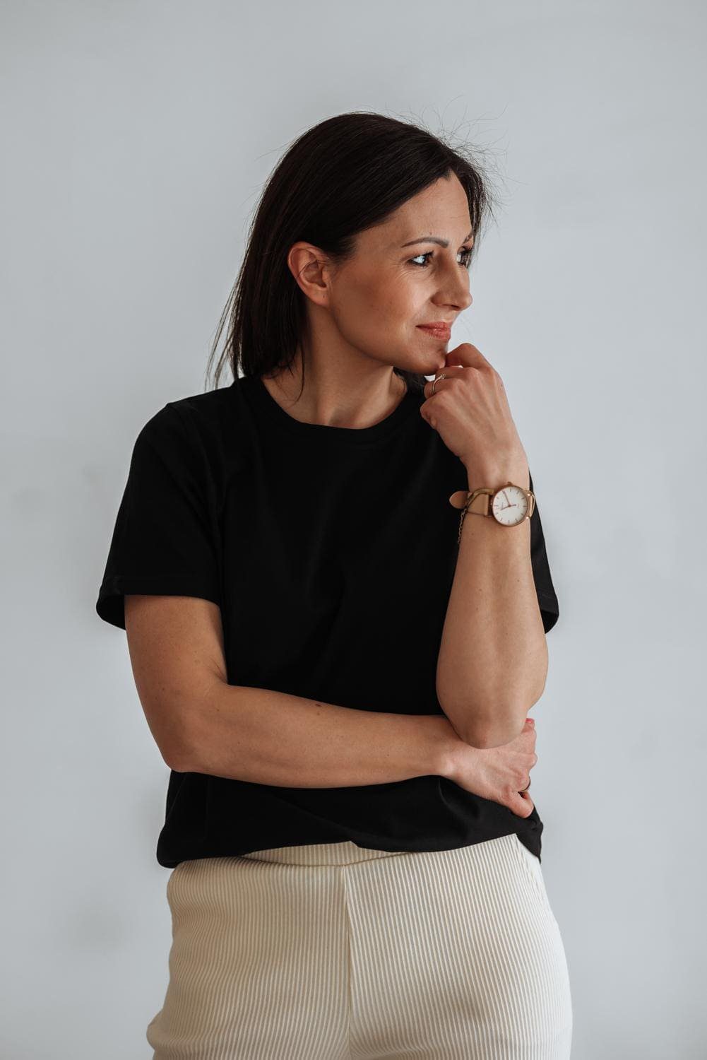Sposób pielęgnacji: Tworzymy nasze ubrania z ogromną troską. Jeśli chcesz, aby zostały z Tobą na dłużej, zadbaj o ich pielęgnację. Pierz ręcznie lub w niskiej temperaturze w delikatnych płynach do prania (unikaj płynów do prania białych ubrań), nie wiruj zbyt intensywnie oraz nie susz w suszarce bębnowej. Po praniu ponaciągaj ostrożnie dzianinę uważając na szwy. Warto zadbać o nadanie jej odpowiedniej formy, by uniknąć skurczenia po wysuszeniu. Koniecznie wyprasuj ubranie z włączoną funkcją pary, wtedy za każdym razem będzie Cię zachwycać na nowo.