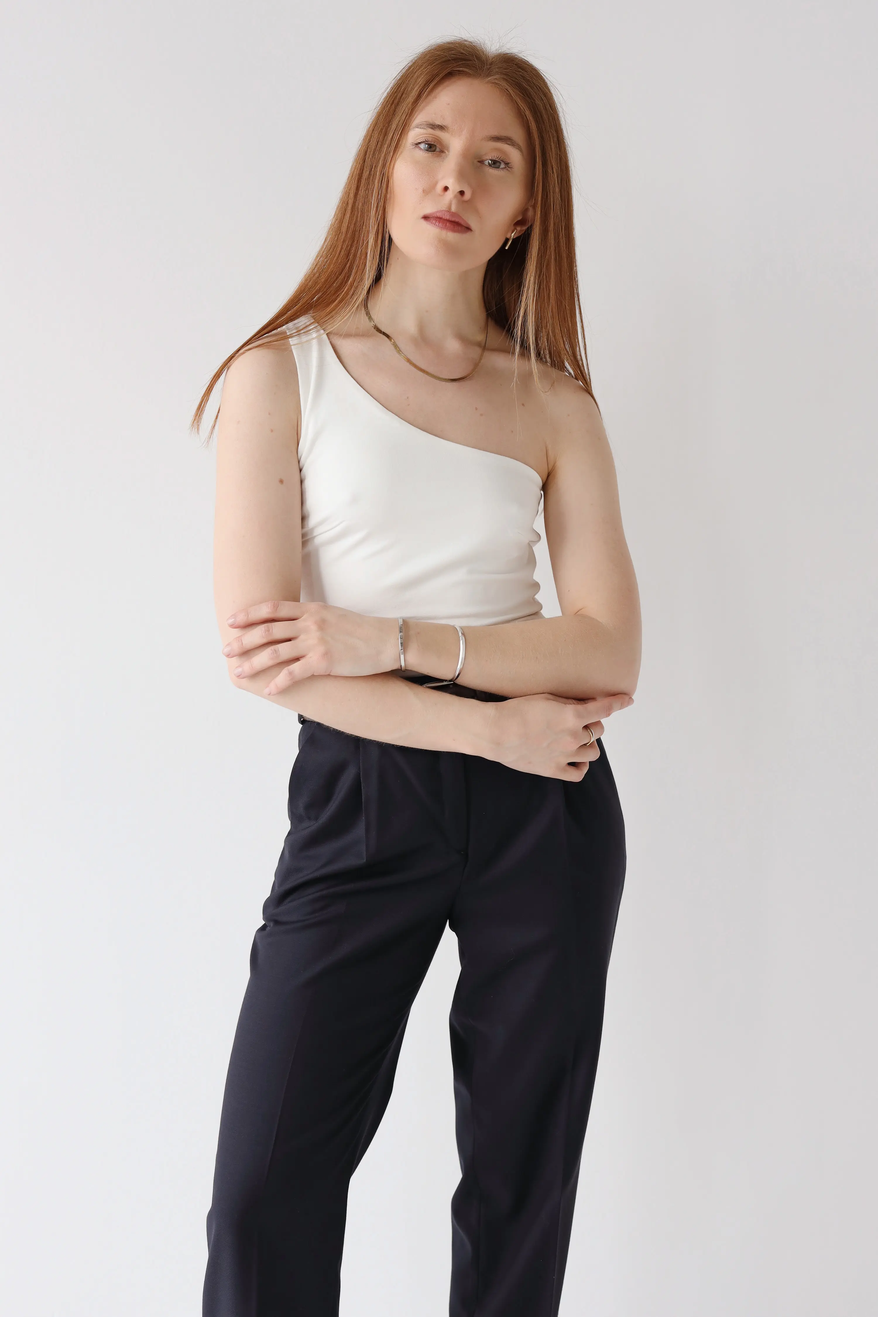 Top asymetryczny na jedno ramię NORAH. To asymetryczna forma na jedno ramię, która subtelnie podkreśla sylwetkę i nadaje stylizacji nowoczesnego charakteru. Czysta linia kroju eksponuje ramię i porządkuje górną część sylwetki, tworząc wyrazisty, ale wciąż elegancki efekt.