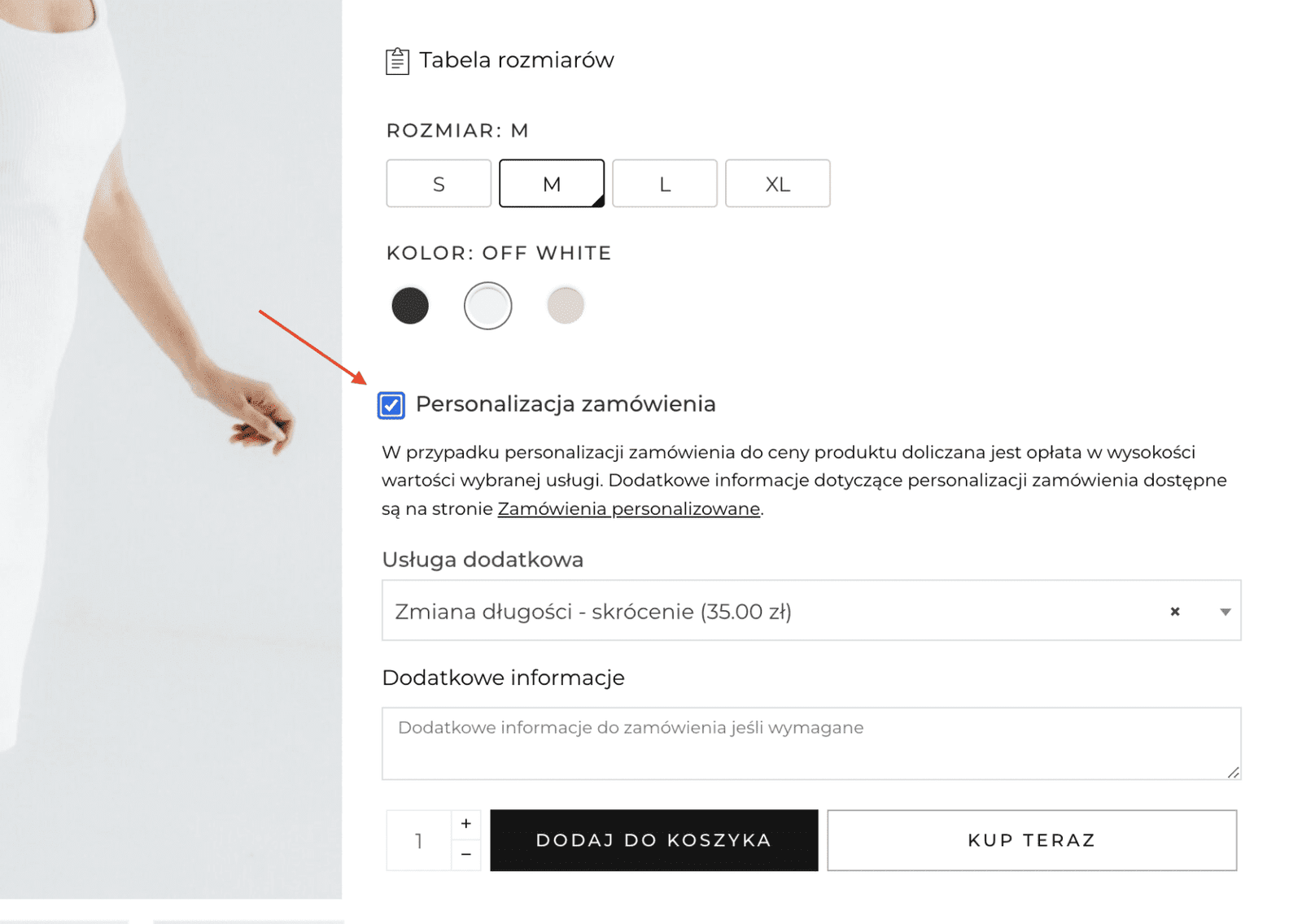 Personalizacja możliwa jest w wybranych modelach. Modele objęte personalizacją mają dostępną taką opcję nad przyciskiem “Dodaj do koszyka”. Aby dokonać personalizacji należy wybrać odpowiednią usługę spośród listy dostępnych usług. Personalizacja jest dodatkowo płatna. Po jej wybraniu w koszyku automatycznie naliczy się kwota o wartości ceny danej usługi.